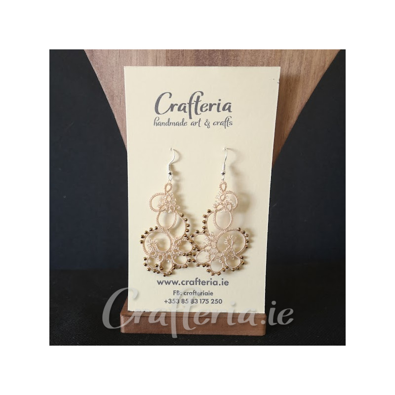 Cream handmade earrings with old gold glass beads.